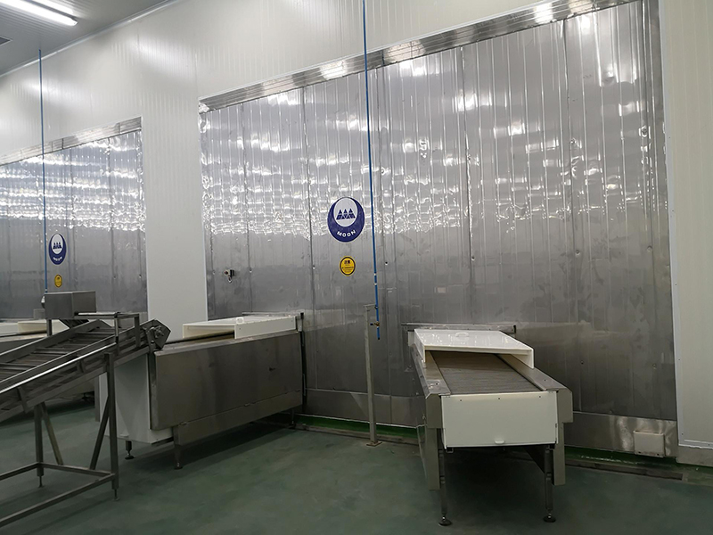 - Cámaras frigoríficas de baja temperatura: Cinco salas, cada una con una capacidad de 200 toneladas, diseñadas específicamente para congelar productos como guisantes y duraznos amarillos, mantenidas a -20°C.